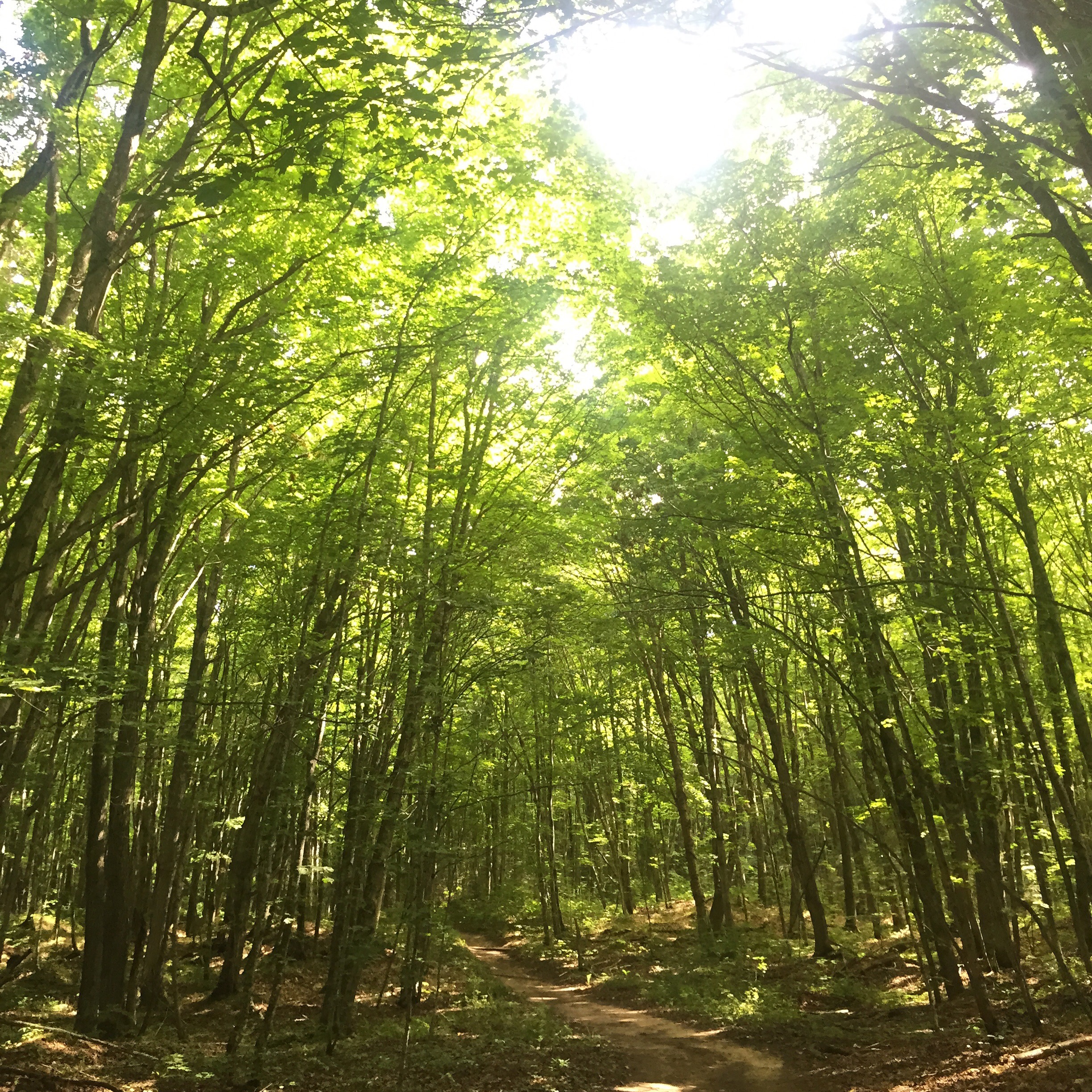 We continued on the forest trail and marveled at how different the forest looks from Washington. Washington forests look like you are in a Jurassic Park movie with the variety of ferns, the many colors of green, and the towering evergreens. The Chapel Basin trail was a cross between dirt and sand, and the birch trees grew tall and thin.