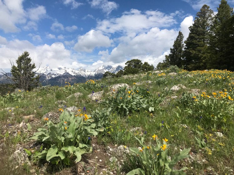 Grandview: This was our first year hiking this trail and since it’s short and steep it makes for a great quick after work hike. The hike starts off by soon to be blooming huckleberry bushes and the summit is a pano view of the Tetons after a steep climb through the forest. The day we hiked this trail it started to rain once we reached the summit so we ran down the trail only to have the sun shinning when we returned. That’s the way the weather is in Wyoming, it changes quickly and sometimes it feels like we get all four seasons in one day.