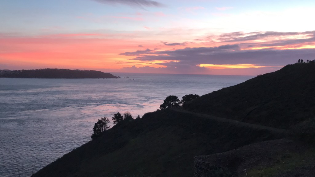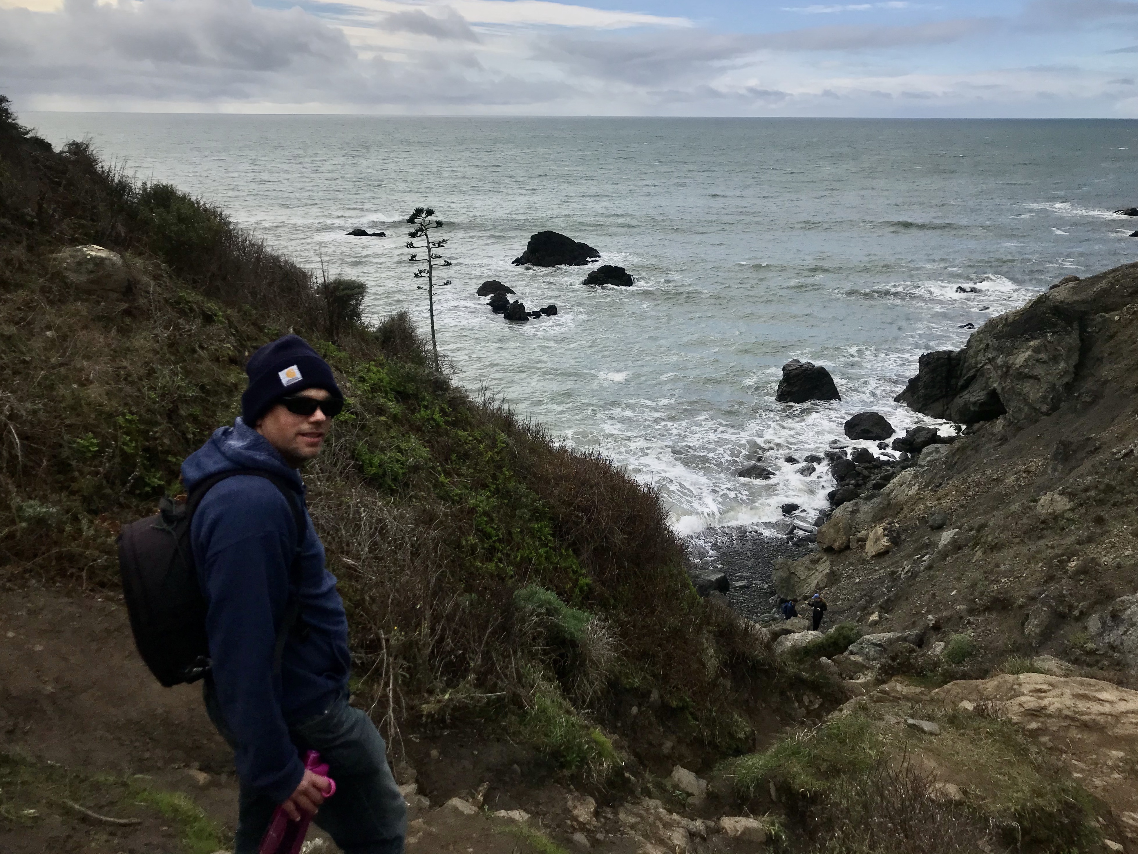 Since we had been to San Francisco years ago so we decided to go at sunset to get some photos of the bridge and explore the area prior. Brad found a cool beach hike right outside San Fran at Muir Beach. This seaside area has many different hiking trails, most along the cliffs overlooking the ocean. The hike was up and down along the high cliffs hugging the ocean along the way. A couple of miles into the hike there is a short, steep trail that leads to a private little inlet called Pirates Cove. We got there as a couple was leaving and had the cove to ourselves for a bit. We sat and watched the ocean, the only sound being the crashing waves against the shore.