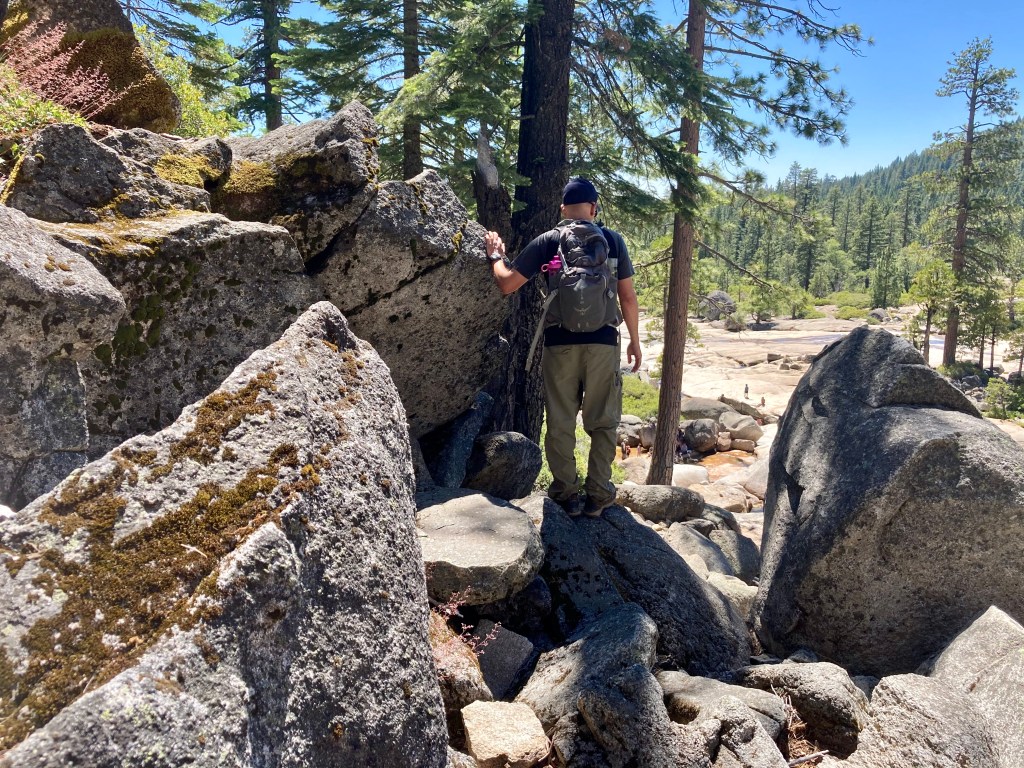 Another cool wilderness area in the SN is right outside Lake Tahoe close to Placerville, a small town known for mining and *ekk* hangings in the 1880’s. Multiple small lakes surround this area along with many waterfalls and rivers. We hiked to Bassi Falls, which was overall an easy hike to a waterfall. The fun part of this waterfall hike is one can swim in the river downstream from the waterfall and we saw some people stand underneath the waterfall. We were happy to climb around the rocks to watch others and not get in the water. Lol.