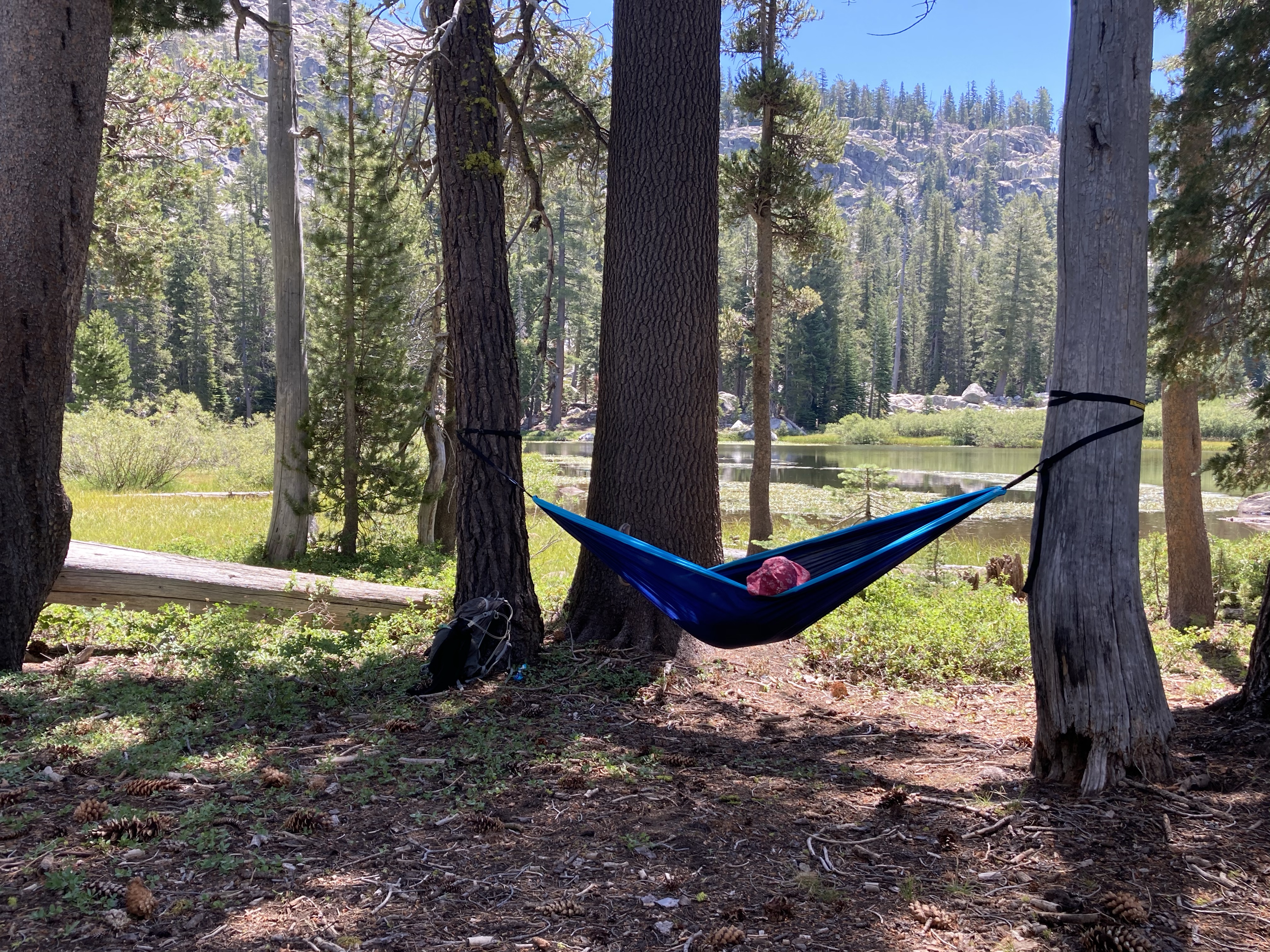 I think the most fun we’ve had this summer is due to getting a hammock. Looking for lake hikes so we can hang out in the hammock mid-hike has been a goal multiple times. The hammock has been to Yosemite, Lake Tahoe, the beach (twice) and just outside of Lake Tahoe to Granite Lake and Hidden Lake. This hike was easy and had nice views of the mountains, cool rock formations and two lakes. Once the hammock was hung, we had lunch and rested, hearing birds, dogs and horses! It was easy to just want to curl up and take a nap all afternoon (and maybe one of us did). It was actually rejuvenating to relax like that mid-hike. After an hour, we were hiking again with a little more zip in our steps.