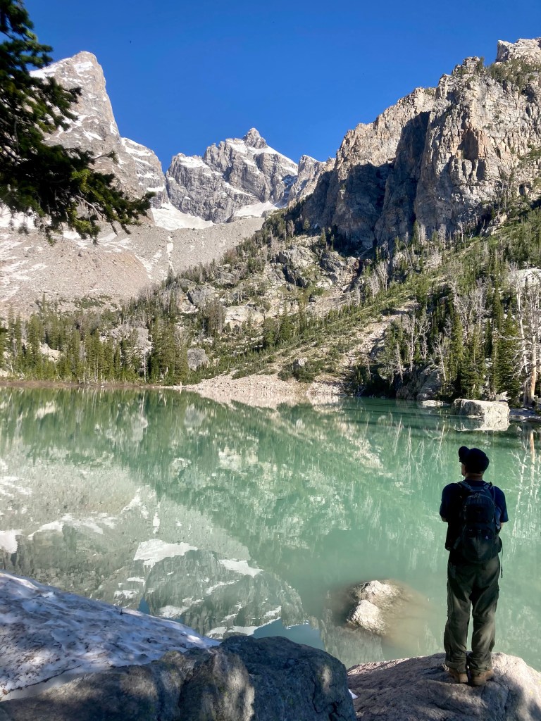 Delta Lake: This is still our favorite hike to date. Not only are the views awesome, it’s the perfect amount of challenges on a hike. Lots of elevation gain, the last mile is unmarked and unmaintained through two boulder fields plus a steep incline up loose dirt. The reward: the most stunning glacier lake. Even along the way the views are impressive: Bradley and Taggart Lake, wildflowers, open meadows, canyon view of Jackson Hole. Once at Delta, words cannot describe the beauty of the lake and photos do not do justice. Delta is a stunning turquoise color lake that is nestled in between evergreens and is under Grand Teton, the highest peak in the park. An added twist this year to the hike was seeing search and rescue, as they were looking for a lost hiker. Twice we saw a helicopter land at the lake and we saw multiple search and rescue hikers on the trail. Sadly, to date the hiker is still missing. As always, tell someone where you plan to hike/bike/run or whatever adventure you embark on! It could save your life.