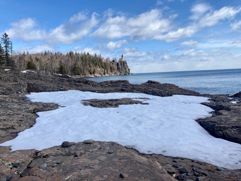 Due to the weather being either cold or rainy, we have only hiked once at Split Rock Lighthouse early in April. It wasn’t busy at the lighthouse and some of the trails were walkable even with the snow. We hiked this park in October experiencing the fall colors and it was just as pretty seeing the park surrounded by snow and ice. After hiking around, we checked out Gooseberry Falls down the street. The park was packed with visitors as the falls were raging with water. The snow on the trails was slippery and since we didn’t bring our micro spikes we skipped hiking there. Afterwards, we went to the famous Rustic Inn for warm drinks and pie. We now understand why it’s a popular restaurant stop!