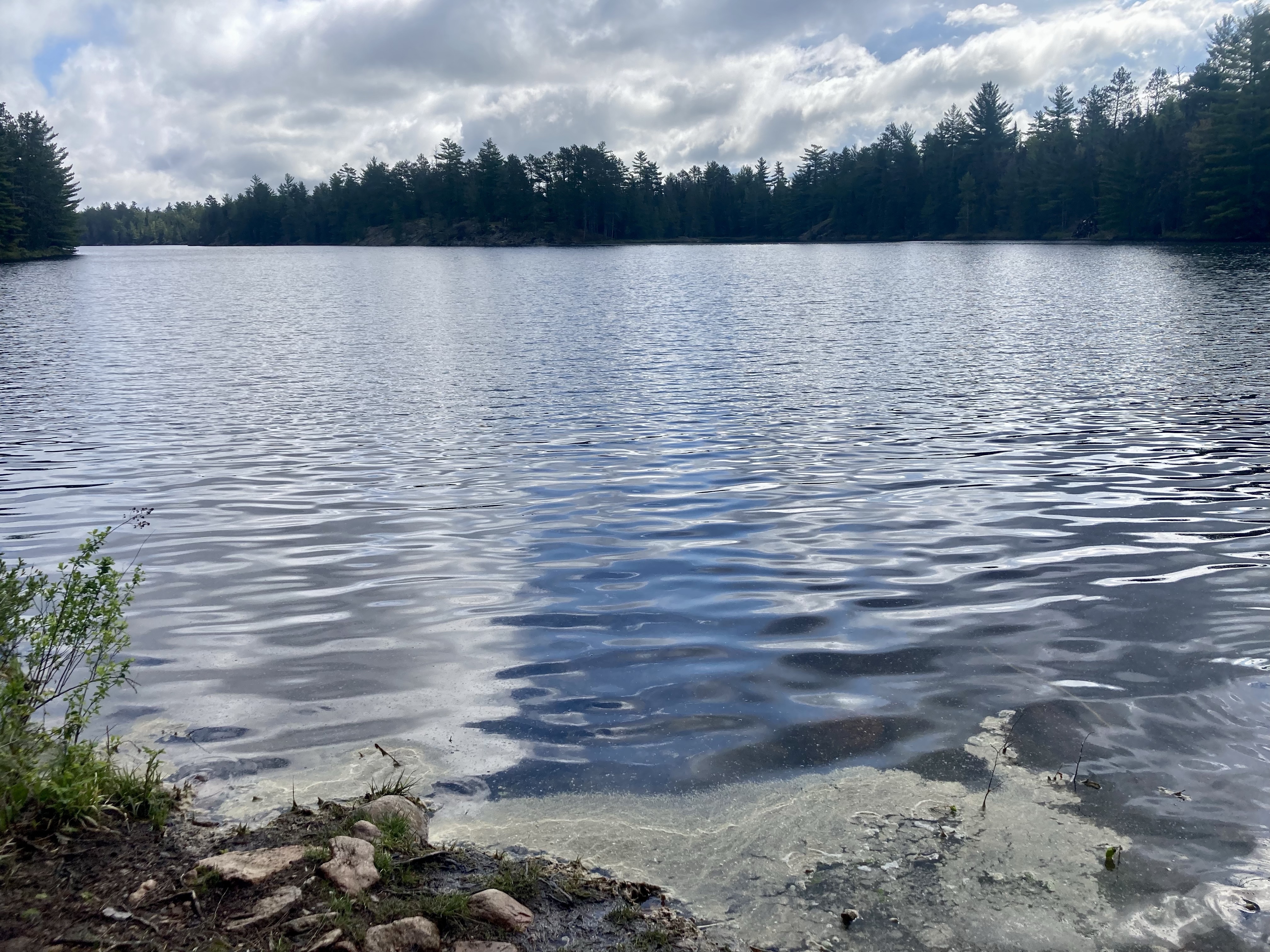Once we got to the lake, we placed the canoe in the water and had to figured out a good way for us to both get in the canoe without getting too wet, the canoe tipping over or making sure the canoe didn’t scrape the million rocks along the shore. We completed that task without fail and starting padding away.