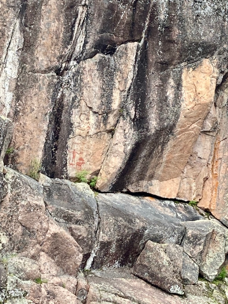 There are over 30 pictographs within the BW and the Native Americans mostly used red pigment and the drawings are 2-5 feet above the water, as if they were painted while standing in a canoe. The pictographs we saw symbolized the Ojibway peoples close ties with their natural surroundings and animal “brothers”. The pictographs were bright and bold in color and looked very neat.