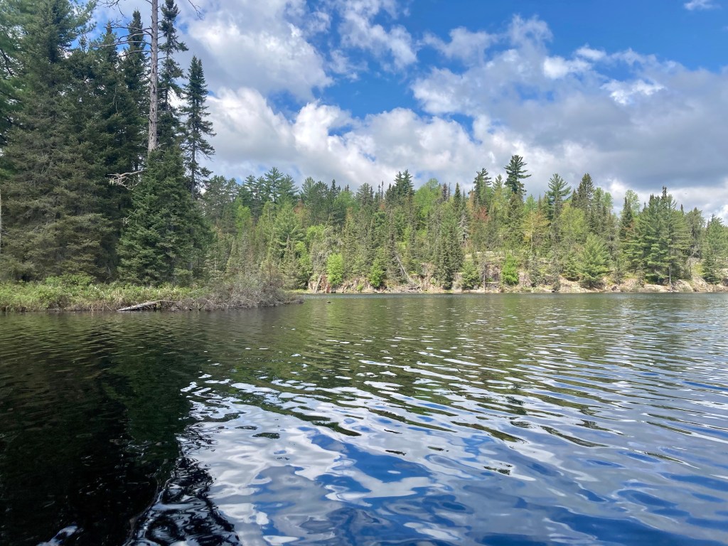 And oh wow! It was so quiet and peaceful. The only noise was our paddles touching the water and the gentle breeze through the trees. The dense forest surrounded the lake and stretched as far as the eye could see. The sun was shining, the clouds were fluffy and as long as we kept paddling, the mosquitoes stayed away.