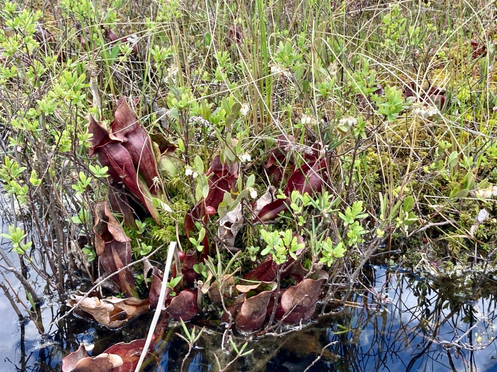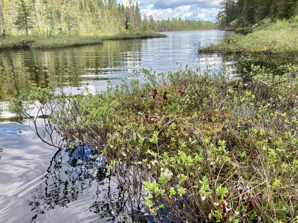 After seeing the artwork, we canoed passed tall cliff walls and through a narrow marsh channel which is home to carnivorous plants. We saw another portage but instead of taking the canoe, we left it safely on shore, walked around and had lunch.
